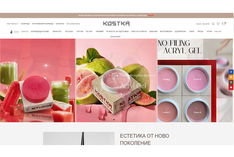 BulgariaIzrada web sajta za Kostka Nail System Bulgaria. Implementacija i izrada web sajta internet prodavnica unikatnog dizajna, mesečno održavanje sajta, interna SEO optimizacija. Više možete da pogledate: